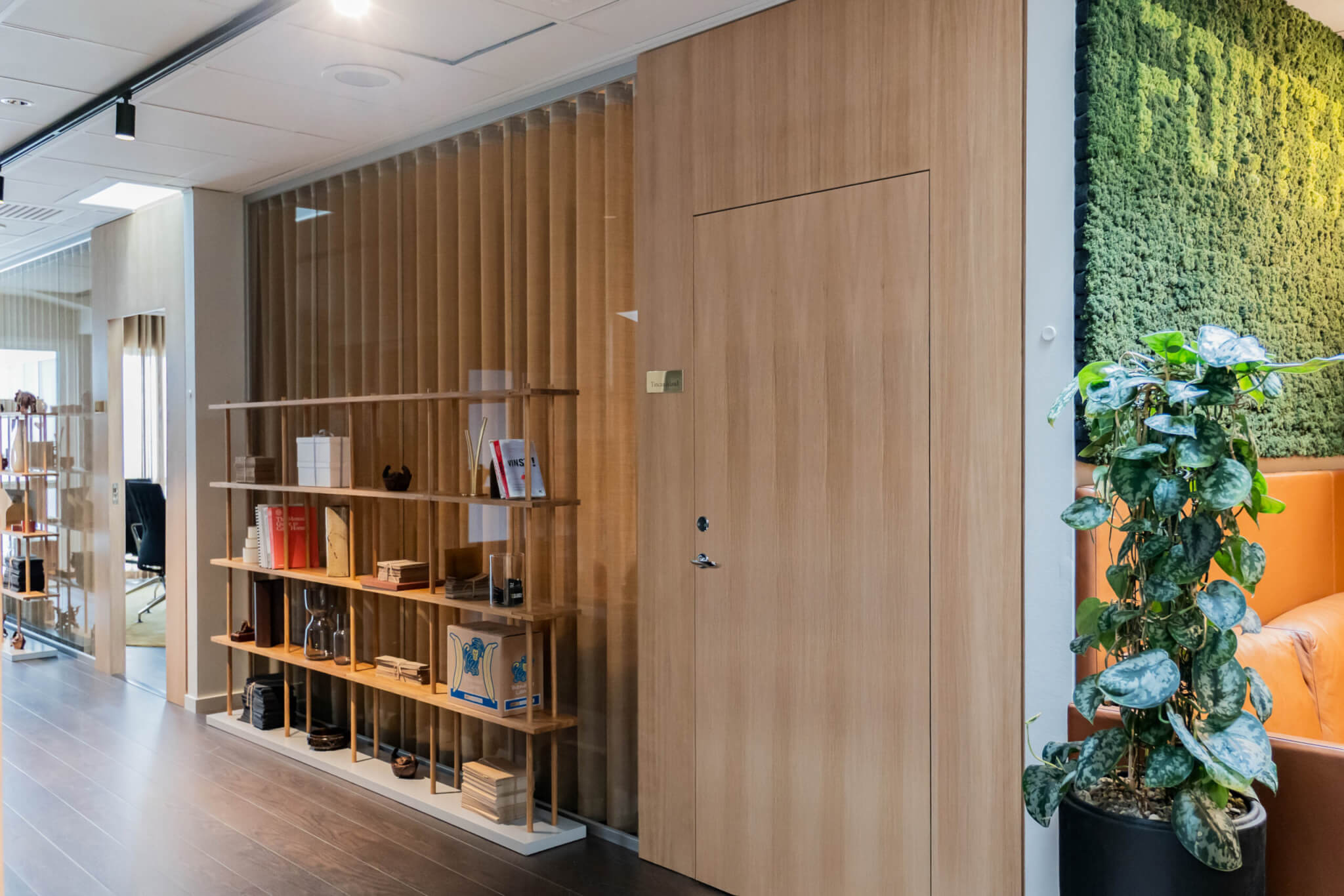 Roommejts Portal ger ett exklusivt intryck med sitt livande dörrblad mot de omslutande panelerna i stängt läge. Dörrmiljön är listfri och har inga synliga karmar. Dörrbladet tillverkas av massivt trä och panelerna av MDF. Den ena panelen är öppningsbar för en enkel elinstallation. Du kan välja mellan en skruvad eller clipsad insida.