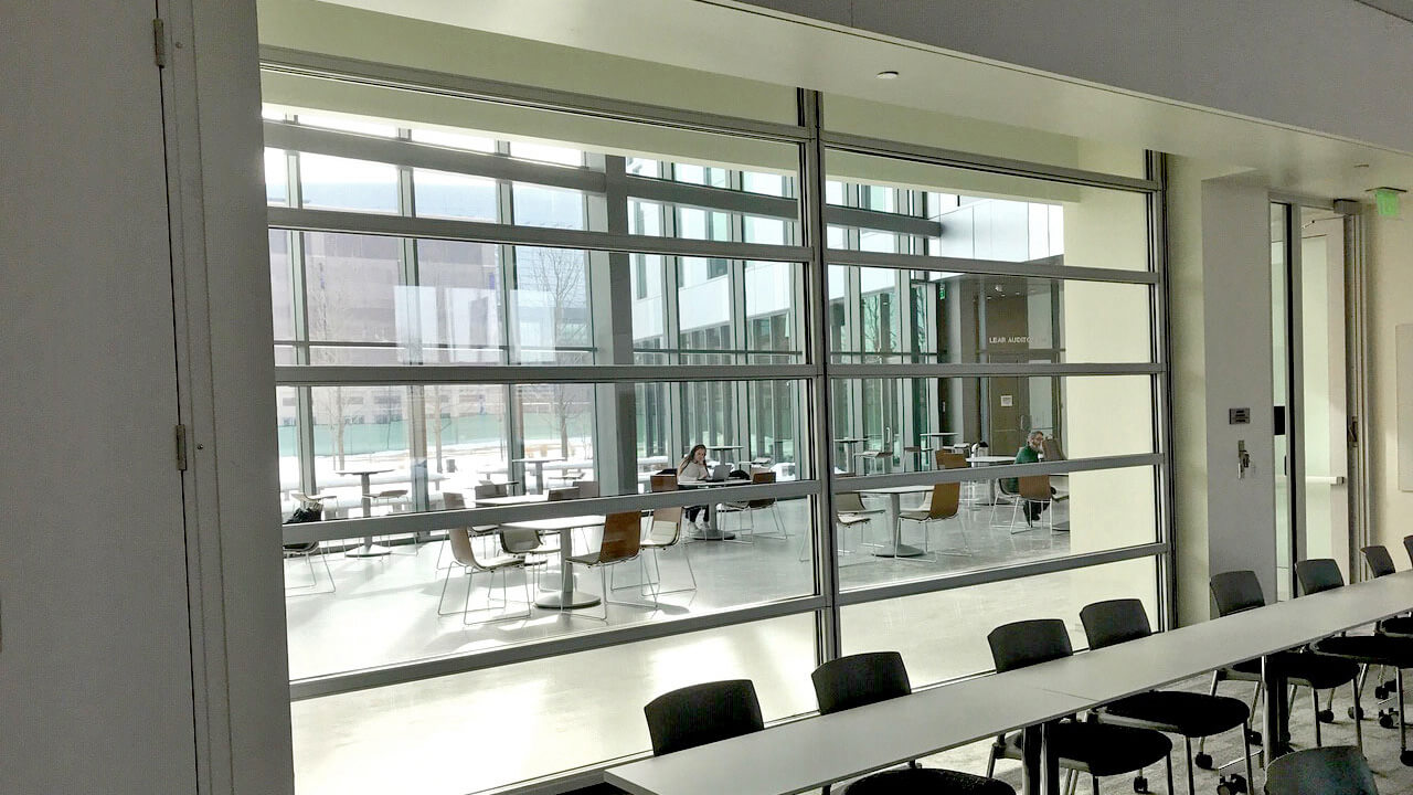 Skyfold Mirage® kombinerar Skyfold-teknologin med ett härligt ljusinsläpp. Mirage är ett bra val för dig som vill avskilja delar av din miljö i mörkare utrymmen och samtidigt bevara rummets öppenhet. Med rena linjer och ett brett utbud av glas- och plexiglaspaneler, kan du skapa en luftig och välkomnande känsla. Panelerna dras smidigt upp i taket och i uppfällt läge är det inga golvskenor som stör. Skyfold Mirage® är helautomatisk.